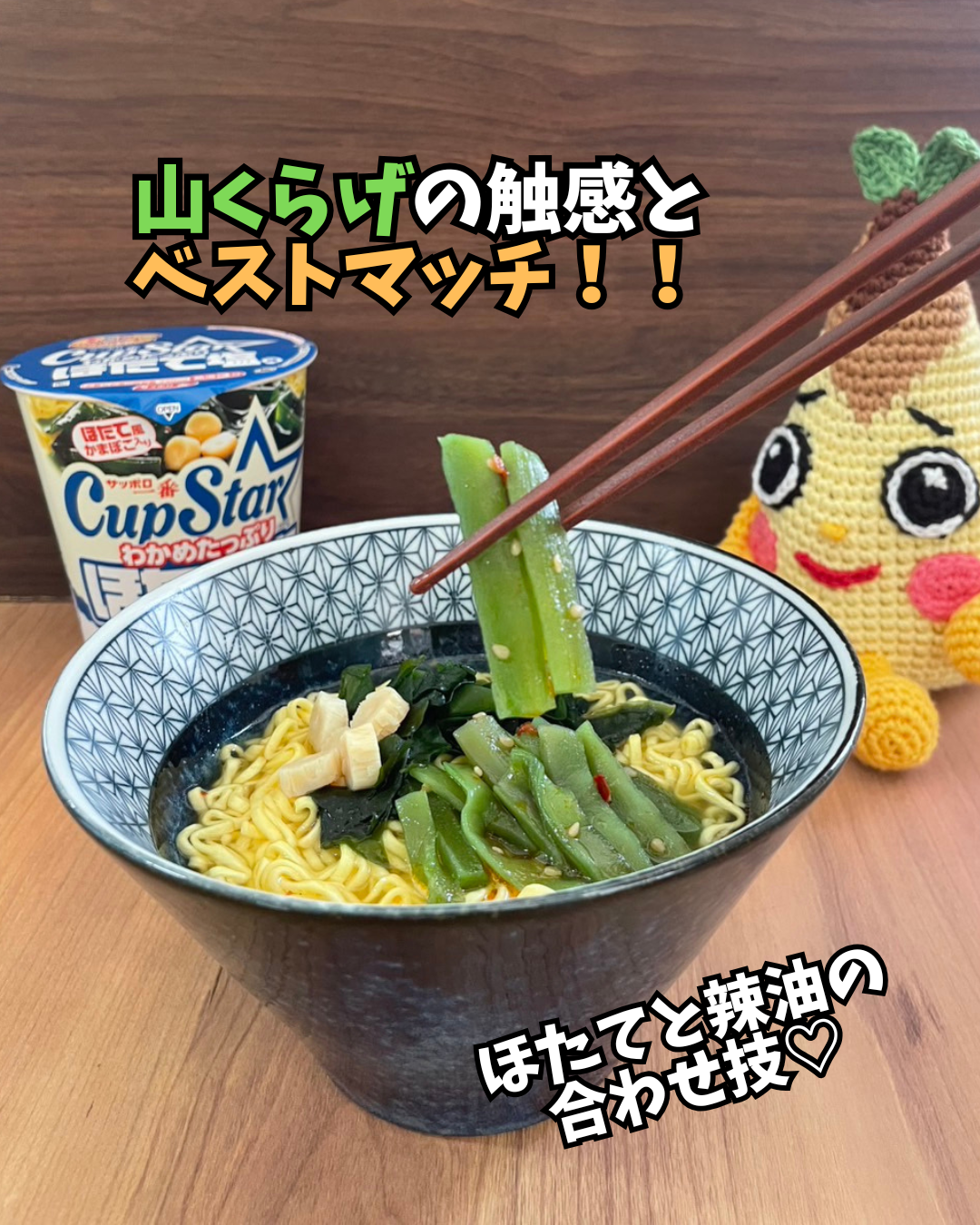 【 サッポロ一番ほたて塩 +ラーメン用味付けメンマしょうゆ味、山くらげ 】